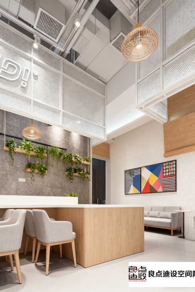 ***吸睛的當屬那個霓虹感的“yo!”燈牌啦,科技感滿滿,瞬間讓整個空間變得活潑起來,拍照打卡超出片的好嘛!還有墻上的幾何裝飾畫,黑白配色簡約大氣,和整體風格***融合,細節(jié)控真的會愛~