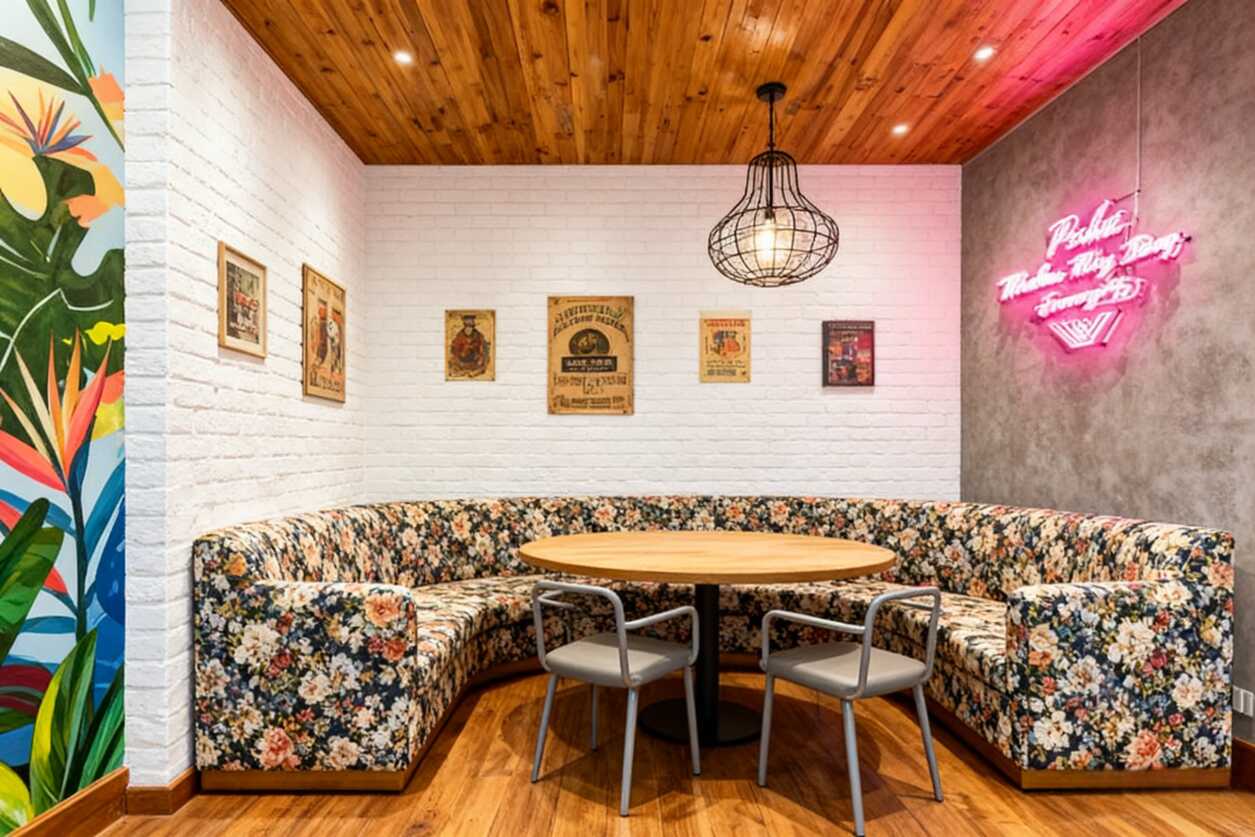 寶子們!今天挖到這家工業(yè)風(fēng)波奇餐廳,水泥墻設(shè)計(jì)真的絕絕子!墻上粉色海報(bào)超吸睛——"Poke Makes My Day Day Everyday"這句話簡(jiǎn)直寫到打工人心坎里,配上手繪波奇碗圖案,看著就超有食欲!