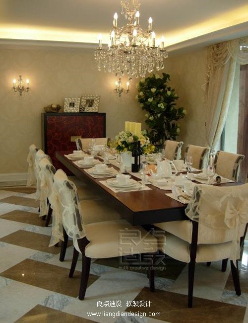 本案運(yùn)用新古典風(fēng)格,新古典風(fēng)格是將懷古的浪漫與現(xiàn)代人對生活需求的相結(jié)合,兼容華貴典雅與時(shí)尚現(xiàn)代,反映出后工業(yè)時(shí)代個(gè)性化美學(xué)觀點(diǎn)和文化品味,在家具配飾上色彩典雅,造型上保留傳統(tǒng)的文化底蘊(yùn),同時(shí)摒棄了過于復(fù)雜的機(jī)理和裝飾,沙發(fā)素雅的布面與柔美的線條結(jié)合,營造出一個(gè)即優(yōu)雅又愜意的空間,黑白搭配的餐桌餐椅使餐廳彰顯大氣,精致的餐具花藝點(diǎn)綴出細(xì)膩優(yōu)雅,書房運(yùn)用三彎腿描銀書桌使空間彰顯華貴風(fēng)范,臥室運(yùn)用柔和米色棉麻質(zhì)地并搭配同色系靠包,使人感受自然舒適。