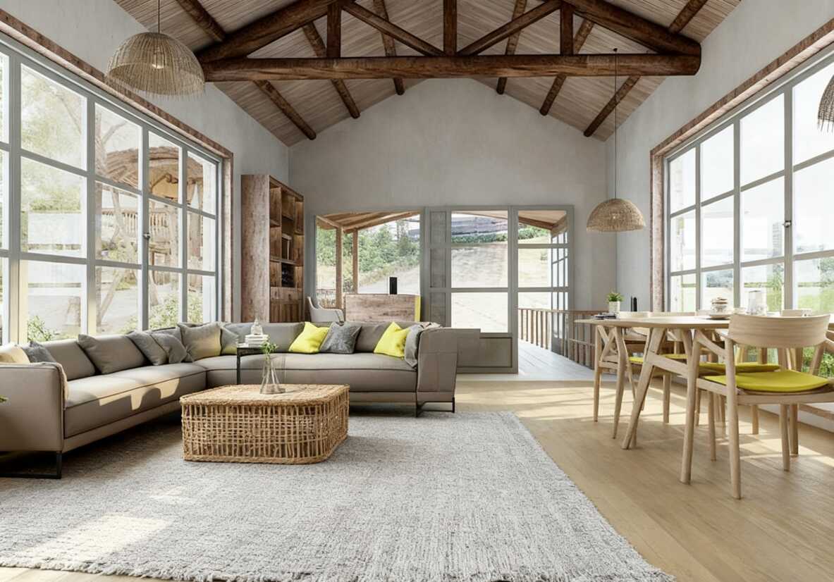 鄉(xiāng)村侘寂風(fēng)民宿軟裝設(shè)計絕了!大窗 + 藤編 + 亮黃點綴,住進這里像把山野搬進了家