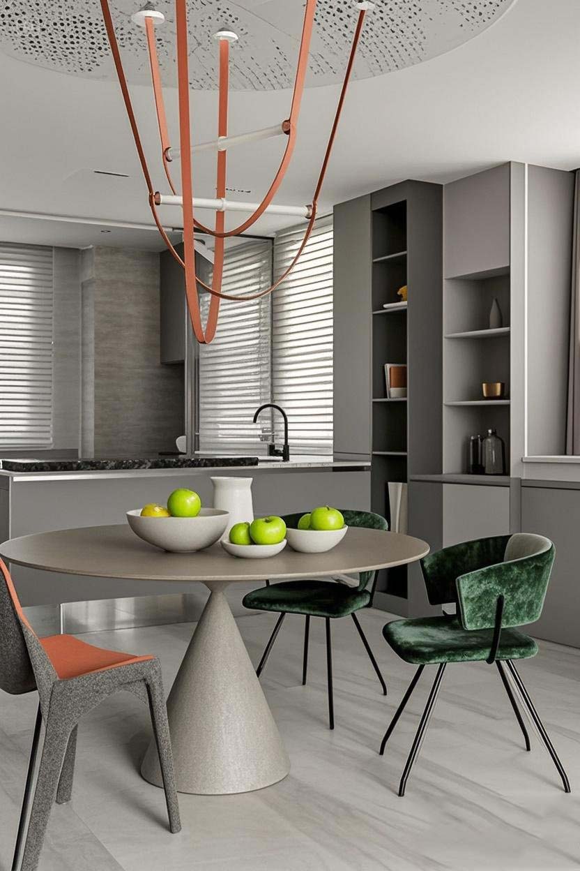 餐廳與廚房由一道玻璃門隔開,利用玻璃的通透感,營造出連續的視覺印象,既能隔離油煙,又能保持與家人的溝通,增進家人之間的互動。