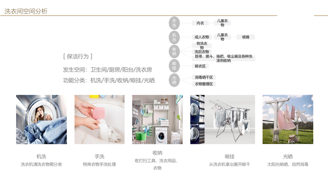 此區(qū)域?yàn)?洗衣房 ,是集機(jī)洗、手洗、晾曬和收納的區(qū)域,可以再添加一些設(shè)備,洗衣、熨燙、收納一條龍,并且設(shè)置單獨(dú)的操作臺(tái),洗衣房不單只是洗衣的地方,也可以在這里縫補(bǔ)衣服,或者進(jìn)行其他需要用水的活動(dòng)。