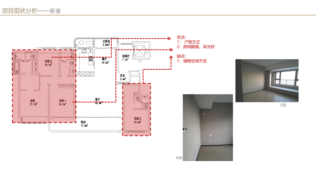 作為套房,將睡眠空間+衣帽收納空間+洗漱空間為一體,床尾有需要的話,可以增加抽屜柜收納跟梳妝臺(tái),兩個(gè)南次臥獨(dú)立的大衣柜能夠滿足客房的日常衣物收納。北次臥